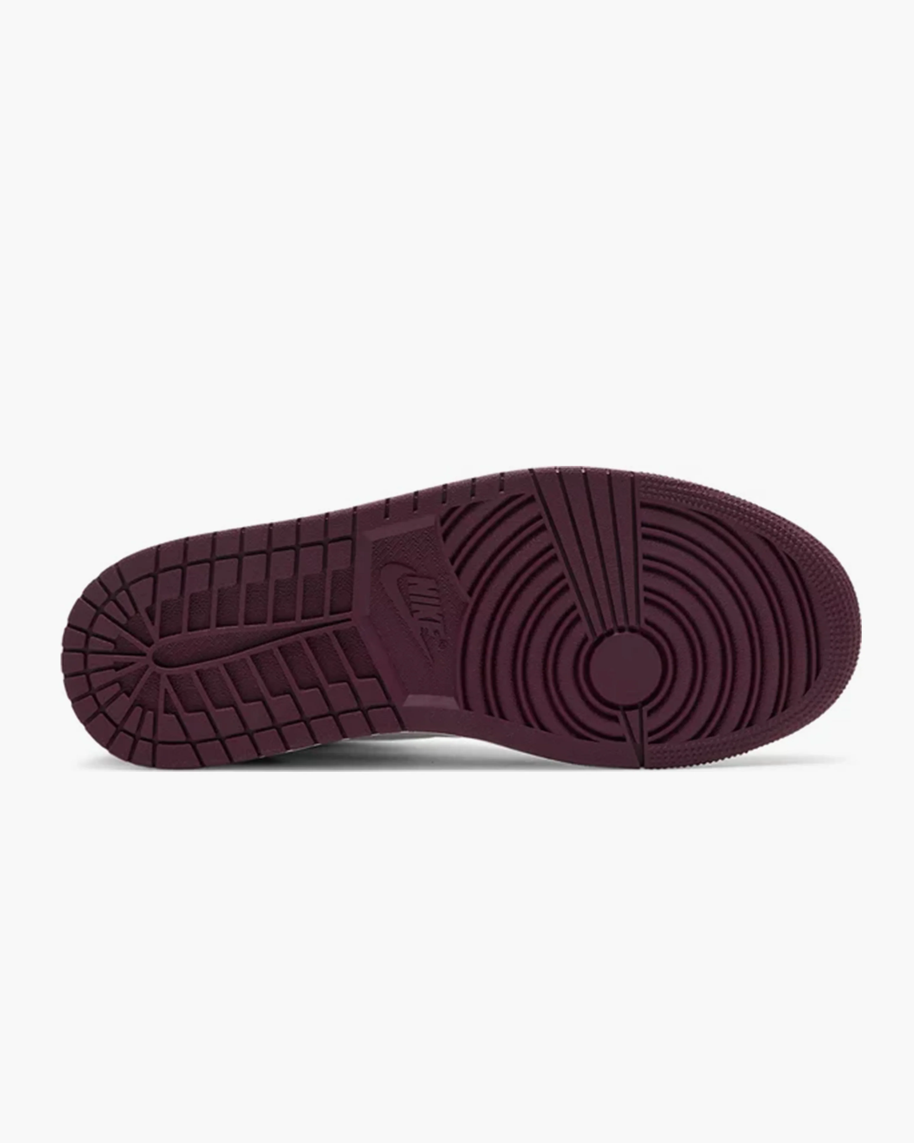 La Air Jordan 1 High OG Bordeaux arbore une tige en cuir, avec une base blanche rehaussĂ©e par des superposition bordeaux. Pour peaufiner ce look automnal, on retrouve cette mĂȘme couleur au niveau de la languette pour le branding et les lacets. Enfin, un Swoosh mĂ©tallisĂ© complĂšte le style, similaire Ă celui de la Air Jordan 1 Retro High Midnight Navy.