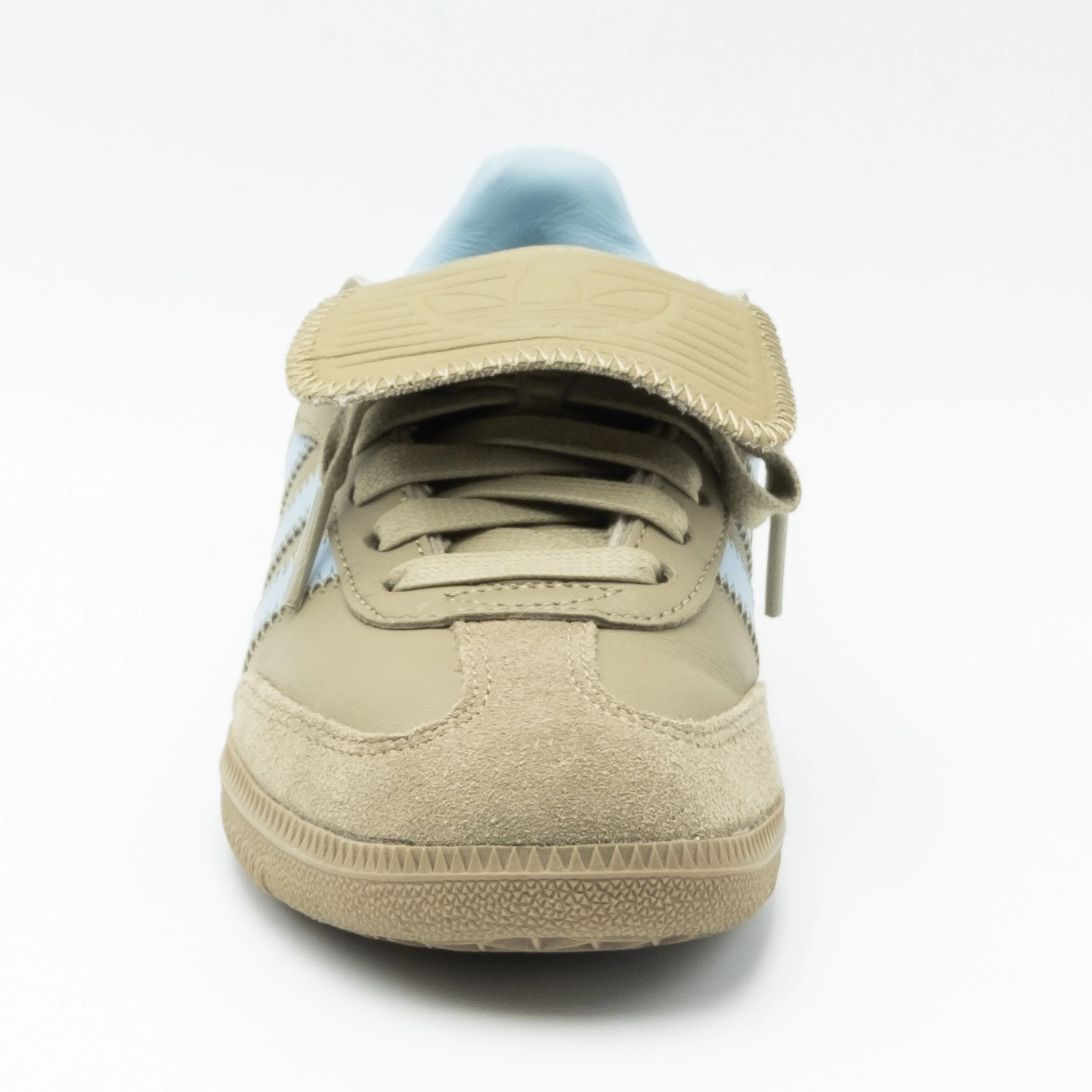 La Adidas Samba Pharrell Humanrace Orbit Vert revisite la classique Samba avec un design moderne. Elle combine une empeigne en cuir premium, des accents bleus pastel, une languette oversize distinctive et une semelle en gomme vintage. Idéale pour un look à la fois élégant et rétro